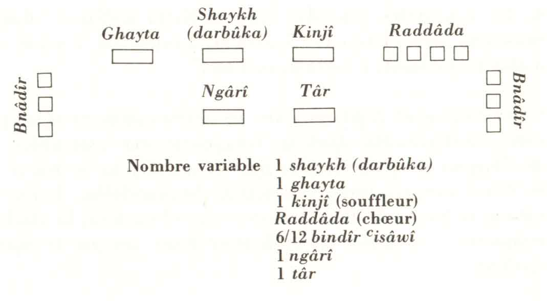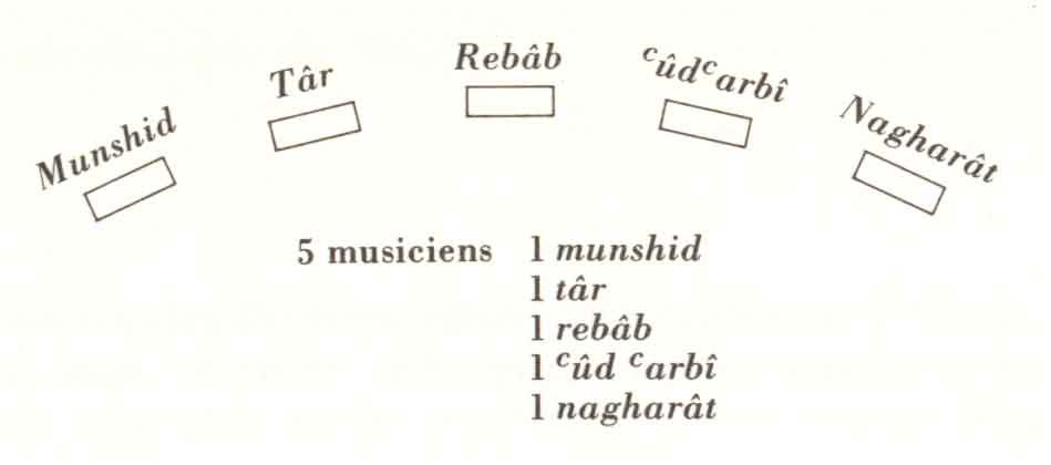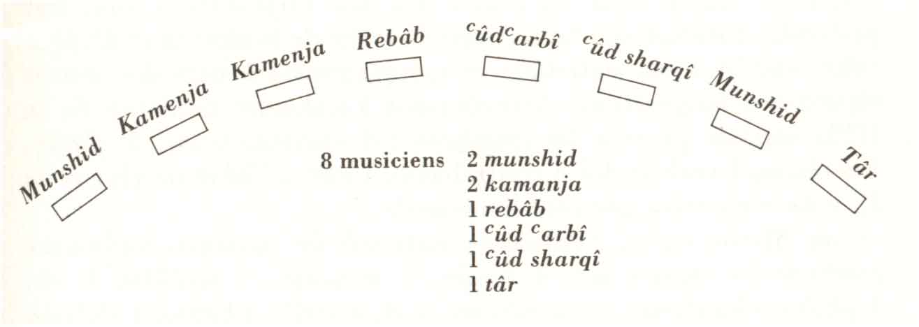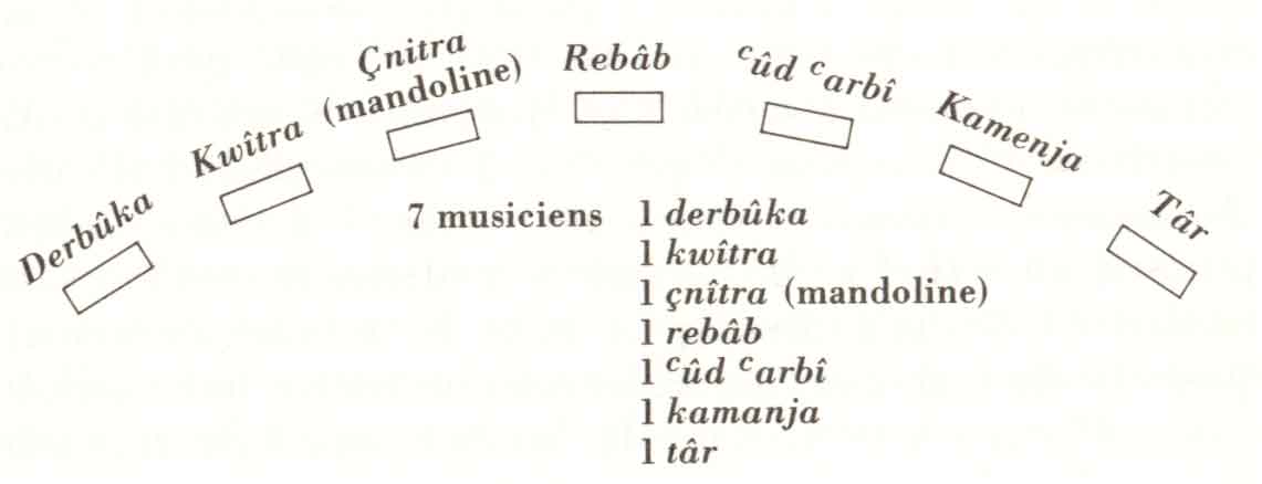 Musikernas placering i orkestern i samtida arabo-andalusisk musik.