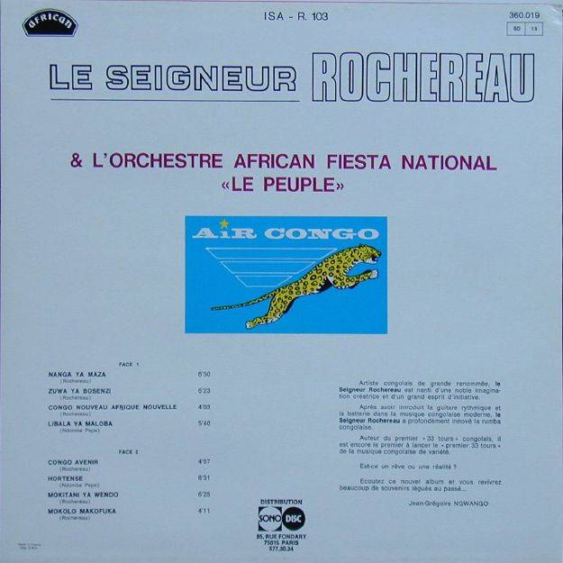 Le Seigneur Rochereau et L'African Fiesta National Dans la musique Congolaise de variétés A-01 Nanga Ya Maza [x](Rochereau) 4:13 Le Seigneur Rochereau et L'African Fiesta National A-02 Zuwa Ya Bozeni [x](Rochereau) 8:15 Le Seigneur Rochereau et L'African Fiesta National A-03 Congo Nouveau Afrique Nouvelle [x](Rochereau) 6:55 Le Seigneur Rochereau et L'African Fiesta National A-04 Libala Ya Maloba [x](Ndombe Pepe) 5:40 Le Seigneur Rochereau et L'African Fiesta National B-01 Congo Avenir [x](Rochereau) 5:25 Le Seigneur Rochereau et L'African Fiesta National B-02 Hortense [x](Ndombe Pepe) 5:08 Le Seigneur Rochereau et L'African Fiesta National B-03 Mokitani Ya Wendo [x](Rochereau) 6:42 Le Seigneur Rochereau et L'African Fiesta National B-04 Mokolo Makofuka [x](Rochereau) 5:38 Le Seigneur Rochereau et L'African Fiesta National LP total time: 00:00 |