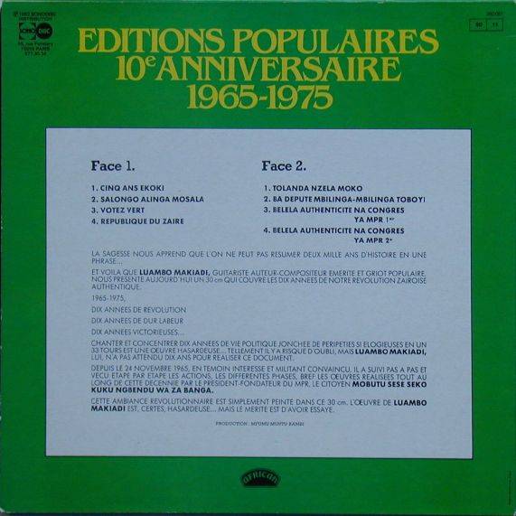 | Comment: (Editions Populaire1975) Any more information about this record is most welcome. LF mailto:disco@bolingo.org |