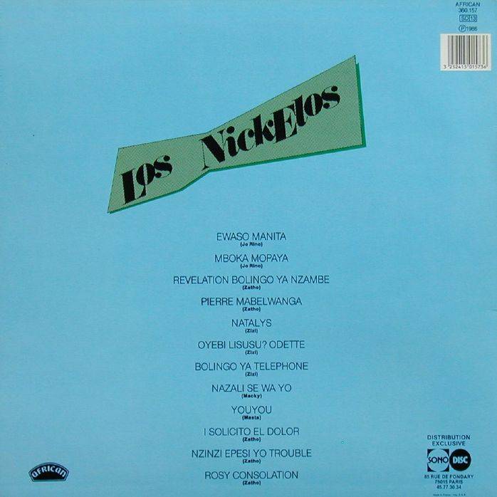 Los Nickelos Merveilles du Passé 1966 - Los Nickelos A-01 Ewaso Manita [x] (Jo Rino) X:XX Los Nickelos A-02 Mboka Mopaya [x] (Jo Rino) X:XX Los Nickelos A-03 Revelation Bolingo ya nzambe [x] (Zatho) X:XX Los Nickelos A-04 Pierre Mabelwanga [x] (Zatho) X:XX Los Nickelos A-05 Natalys [x] (Zizi) X:XX Los Nickelos A-06 Oyebi lisusu Odette? [x] (Zizi) X:XX Los Nickelos B-01 Bolingo ya téléphone [x] (Zizi) X:XX Los Nickelos B-02 Nazali se wa yo [x] (Macky) X:XX Los Nickelos B-03 Youyou [x] (Masta) X:XX Los Nickelos B-04 I Solicito El Dolor [x] (Zatho) X:XX Los Nickelos B-05 Nzinzi epesi yo trouble [x] (Zatho) X:XX Los Nickelos B-06 Rosy Consolation* [x] (Zatho) X:XX Los Nickelos LP total time: 00:00 |