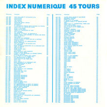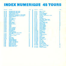 | 45 rpm index, first catalogue. For a big view use the picture link, for a smaller view use the text link. The text is readable only in the big view. |