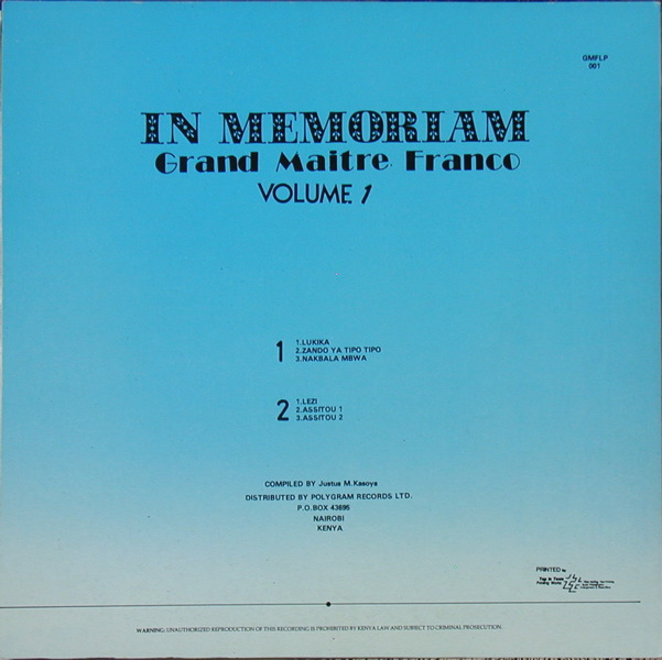 Zaïre [Congo] Polygram Kenya - GMFLP 001 |