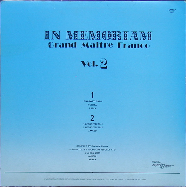 Zaïre [Congo] Polygram Kenya - GMFLP 002 |